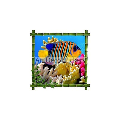 sticker mural trompe l oeil deco bambou poisson ref 918 decoration interieure maison