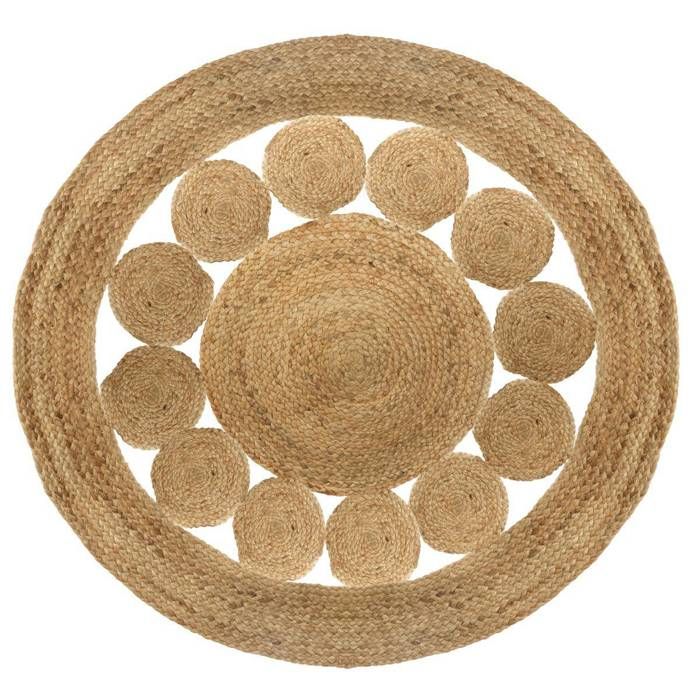 tapis jute beige ajoure rond en rosace tresse ethnique chic d 120cm