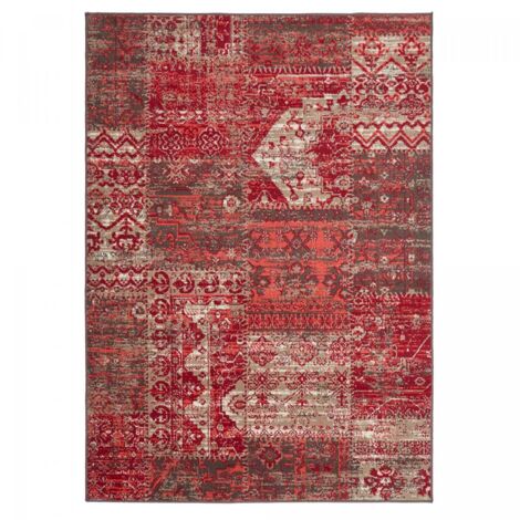 tapis design et moderne 200x290 cm rectangulaire bc patchwork rouge salle a manger adapte au chauffage par le sol