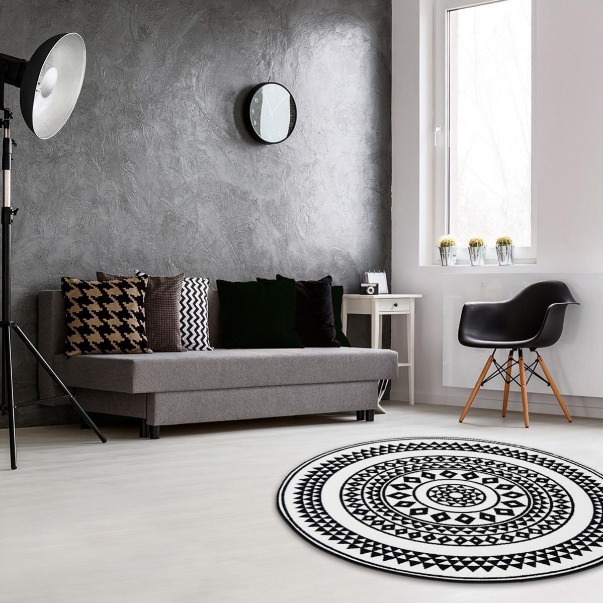 tapis rond et ethnique en noir et blanc noir 100 x 100 cm polypropylene leroy merlin