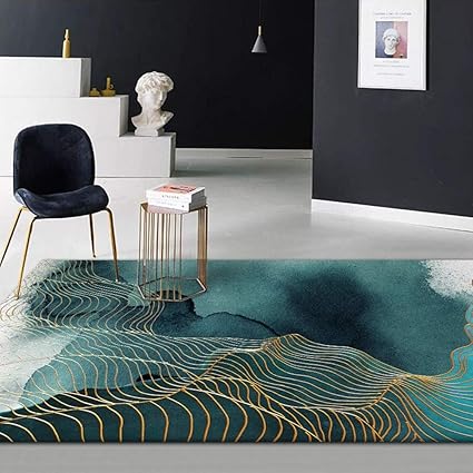 lk home tapis antiderapant convient pour les tapis decoratifs de cuisine de chevet de canape de table basse de salon tapis peint a l encre abstraite verte ligne d or elegante 160 230cm amazon fr cuisine maison