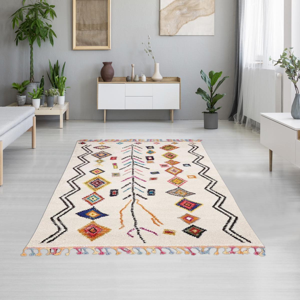 tapis style berbere 200x290 cm rectangulaire ourika mk 02 multicolore salle a manger adapte au chauffage par le sol leroy merlin