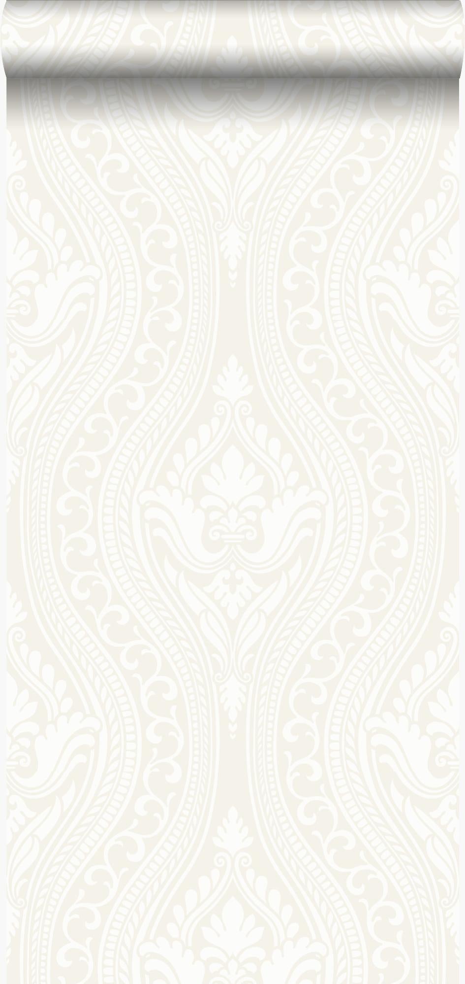 papier peint intisse flocke a dessin baroque en velours blanc 53 cm x 10 05 m origin leroy merlin