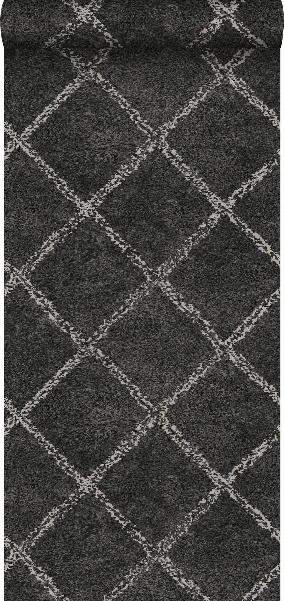 papier peint intisse impression ultra mat eco texture tapis oriental berber noir avec une impression en blanc mat 53 cm x 10 05 m estahome leroy merlin