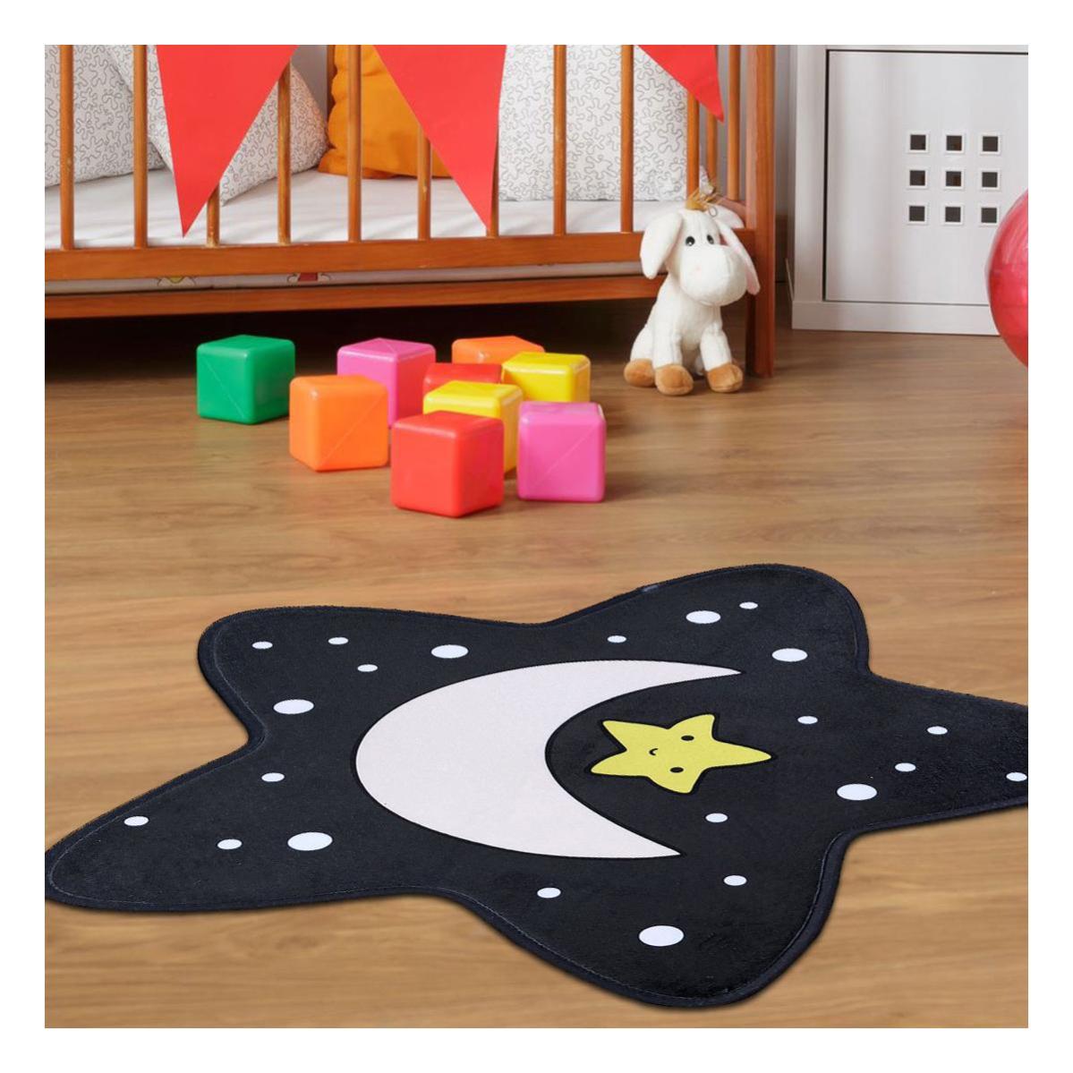 tapis enfant 75x75 cm forme originale ultra doux etoile 3 noir chambre adapte au chauffage par le sol leroy merlin
