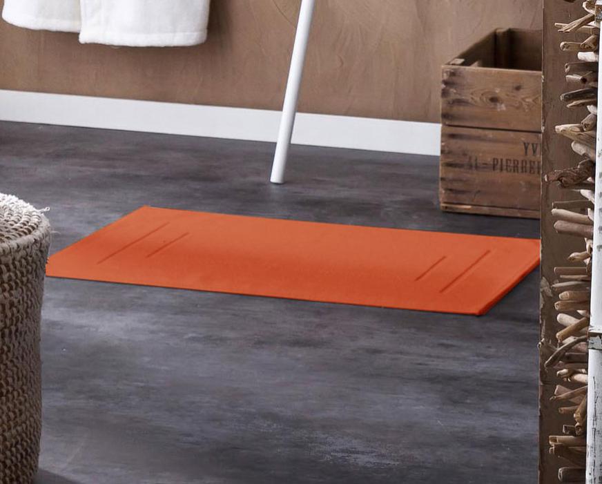 tapis de bain 60x90cm en microfibre chenille terracota leroy merlin