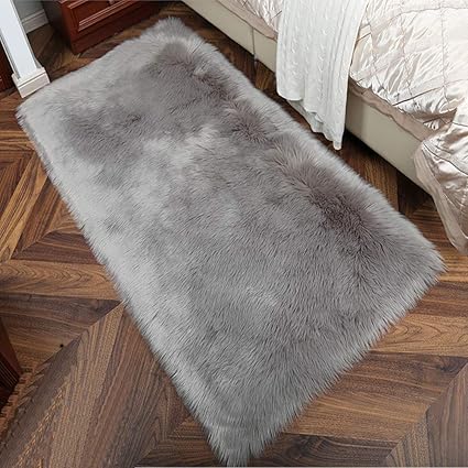 topspitgo faux peau de mouton tapis poil long fourrure douce synthetique tapis antiderapant pour salon chambre canape tapis de plancher gris 70x135cm amazon fr cuisine maison