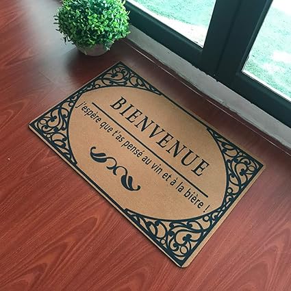 qpowy paillasson de bienvenue drole pour porte d entree bienvenue en francais j espere que vous avez pense au vin et a la biere tapis en caoutchouc amazon fr cuisine maison
