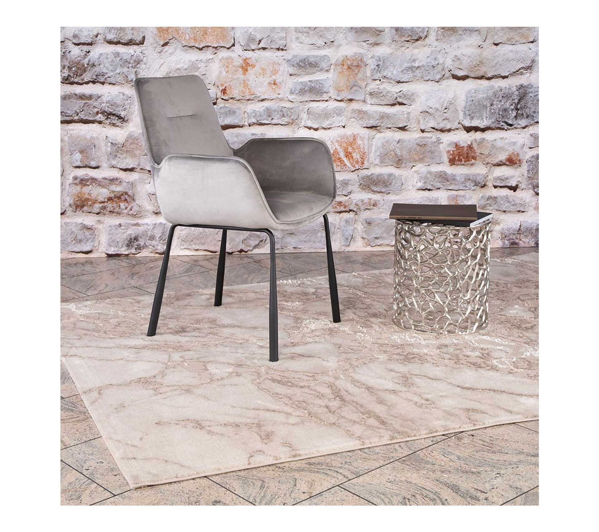 tapis motif marbre 3 d bordure gris argent tapis24