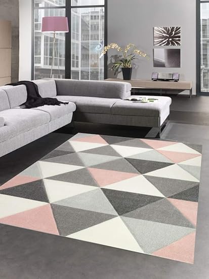 carpetia tapis modern moquette motif triangle rose beige gris grosse 120x170 cm amazon fr cuisine maison