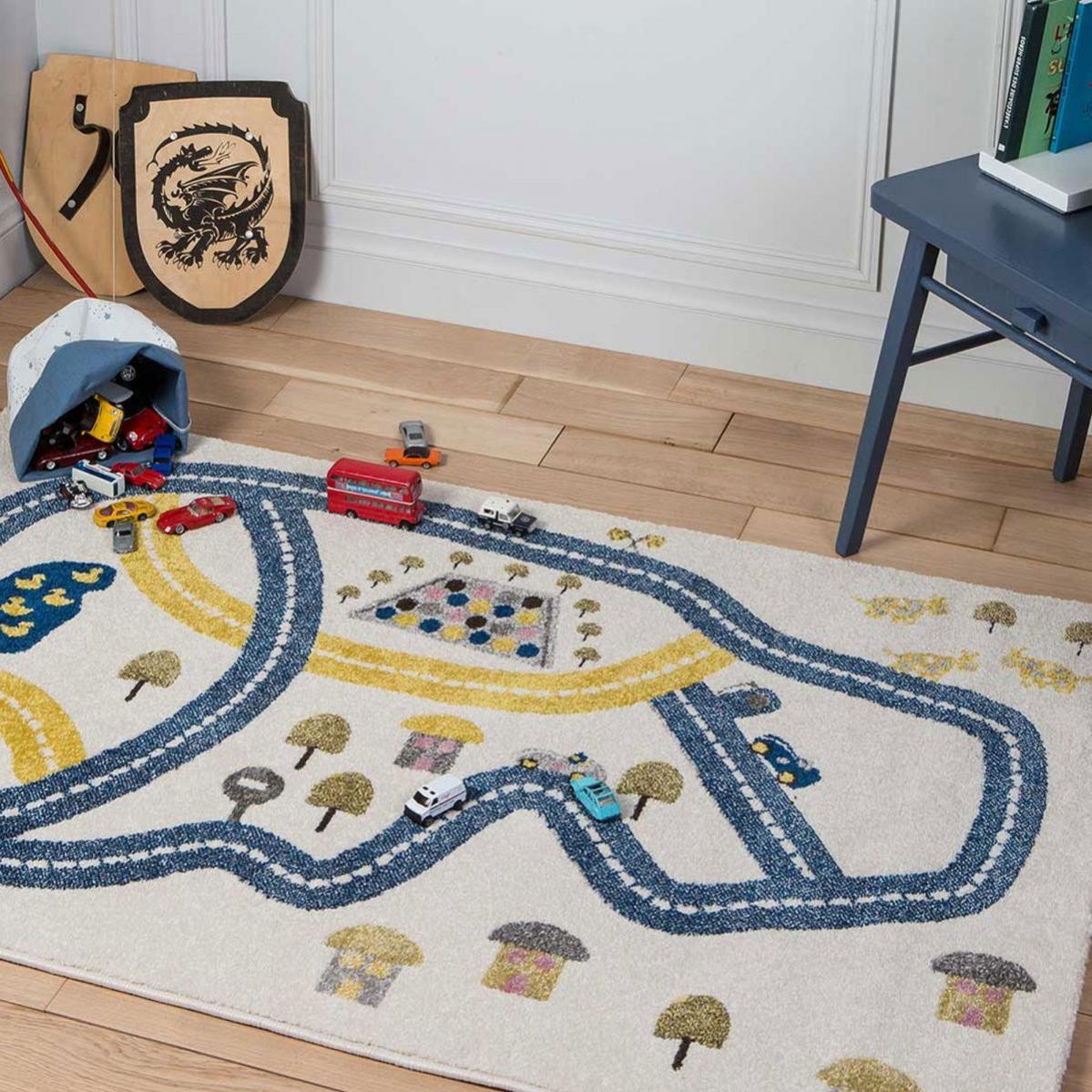 tapis enfant 100x150 cm rectangulaire circuit blanc chambre adapte au chauffage par le sol leroy merlin