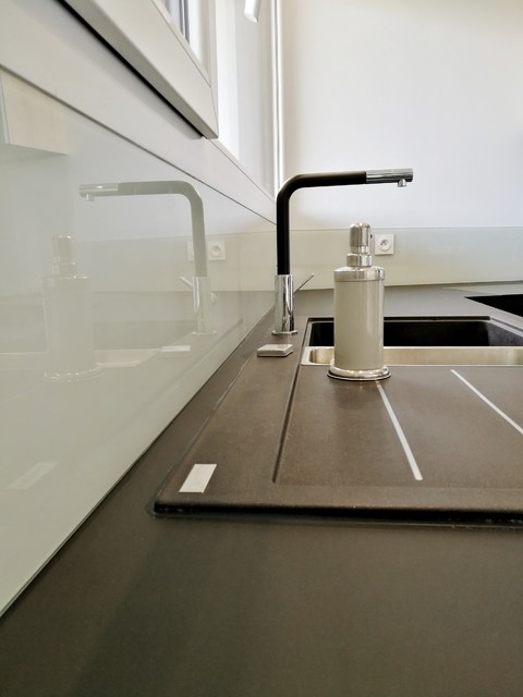 credence de cuisine en verre emaille trempe blanc brume contemporain cuisine lyon par e miroiterie houzz