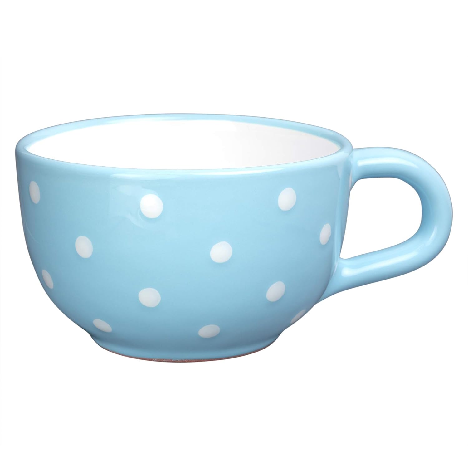cuisine maison tasse a cafe a the bleue ciel a pois blancs en ceramique avec anse faite et peinte a la main a soupe city to cottage tres grande 500ml tasses
