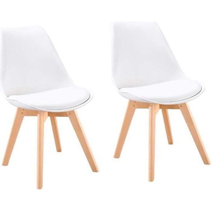 bjorn lot de 2 chaises de salle a manger simili blanc scandinave l 48 x p 57 cm cdiscount maison