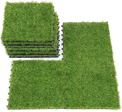 qyh gazon artificiel avec verrouillage de carrelage dalles de sol du pont de herbe tapis doux faux herbe gazon synthetique herbe tapis pour interieur ou exterieur terrasse sols 1 x1 9 pieces
