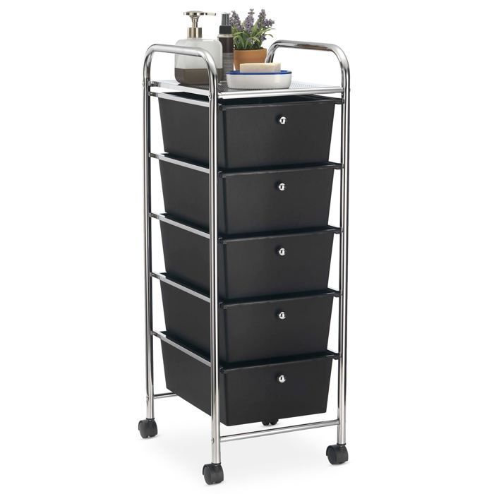 caisson sur roulettes gina chariot avec 5 tiroirs en plastique noir et 1 etagere rangement salle de bain en metal chrome cdiscount maison