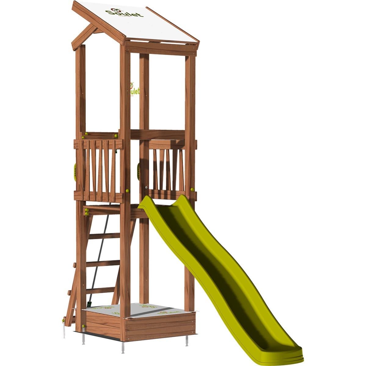 aire de jeux pour enfant avec toit en pente et bac a sable happy climbing 150 sans option leroy merlin