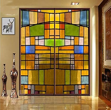 maison floral vitrail fenetre films givre crampon statique etui verre stickers amovible rideaux et accessoires pour fenetre