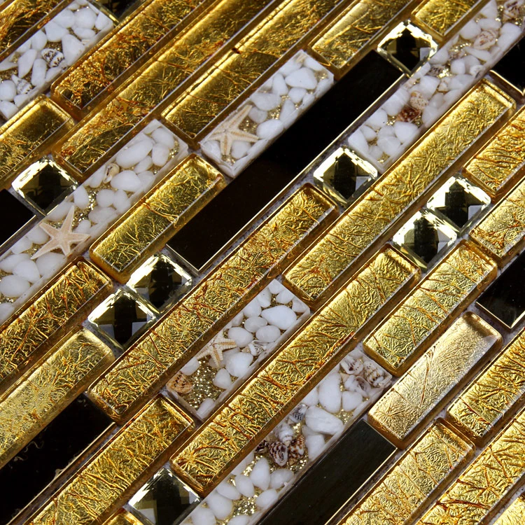 carreaux de mosaique de luxe dores et brillants bande de verre mixte en acier inoxydable et coque pour dosseret de cuisine salle de bain et douche aliexpress