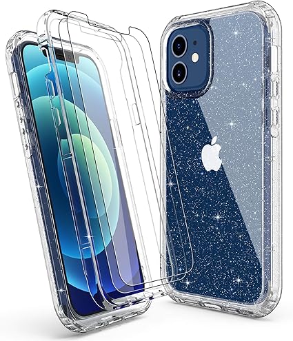 ulak coque iphone 12 paillettes avec 2 pieces verre trempe protecteur etui housse 2 en 1 souple tpu et dur pc antichoc protection coque pour apple iphone 12 iphone 12 pro 6 1 pouces transparente amazon fr high tech